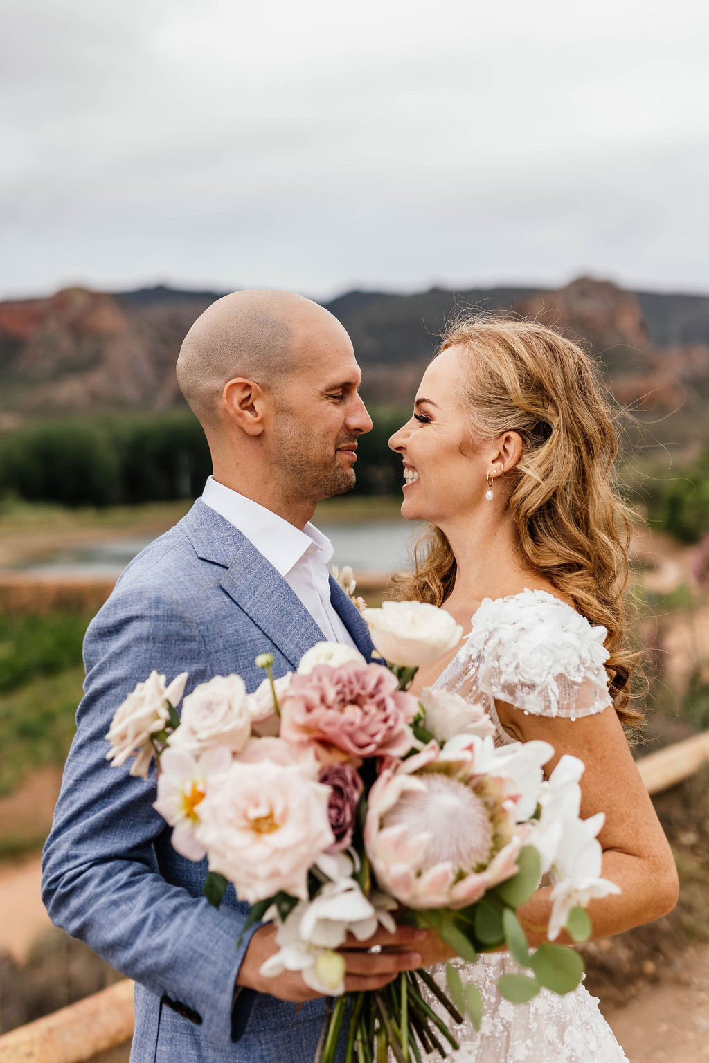 Back story: Lanie is one of six daughters and they all grew up and got married on their family farm in the beautiful Oudshoorn district. Lanie being the youngest and last to get married was devastated when their farm was sold, thinking she would not be able to get married there. Luckily the new owners were delighted to host her wedding and they went out of their way to make this possible for her. Even when the rain derailed most of our plans!
