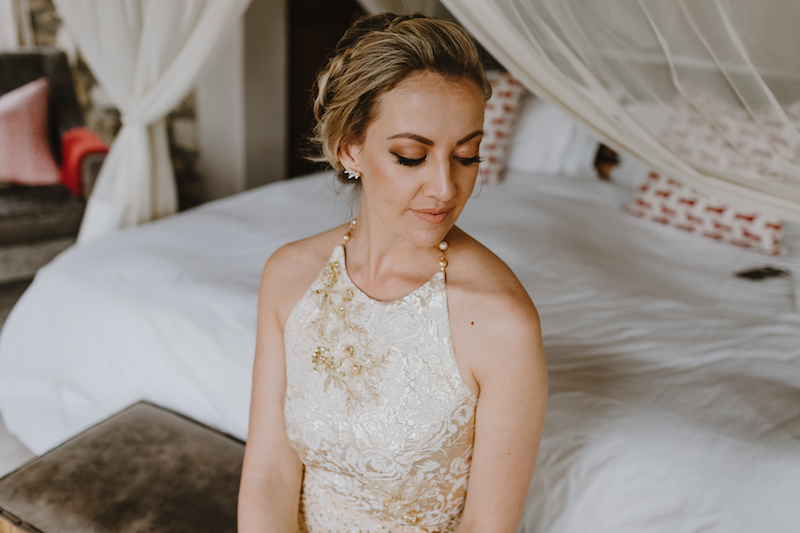 The guests enjoyed a lovely pre-wedding braai by candle light, sitting around the fires, sharing stories and enjoying the true South African cuisine. The next morning, urgent calls were being made to get a generator from Cape Town that would be able to bear the load of the entire farm. At this point, it also started raining softly and my heart broke for the poor couple! Yet, they were both calm and happy, getting ready for the afternoon’s celebration with smiles on their faces and peace in their hearts.