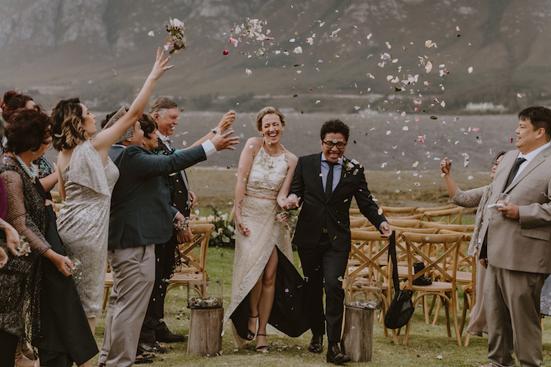 At 15:45, the generator arrived on the farm and everything roared back to life, just in time for guests to get ready and the bride to walk down the aisle. The groom sang her in with a song he composed specially for her and the rain let up just long enough for the ceremony to take place.